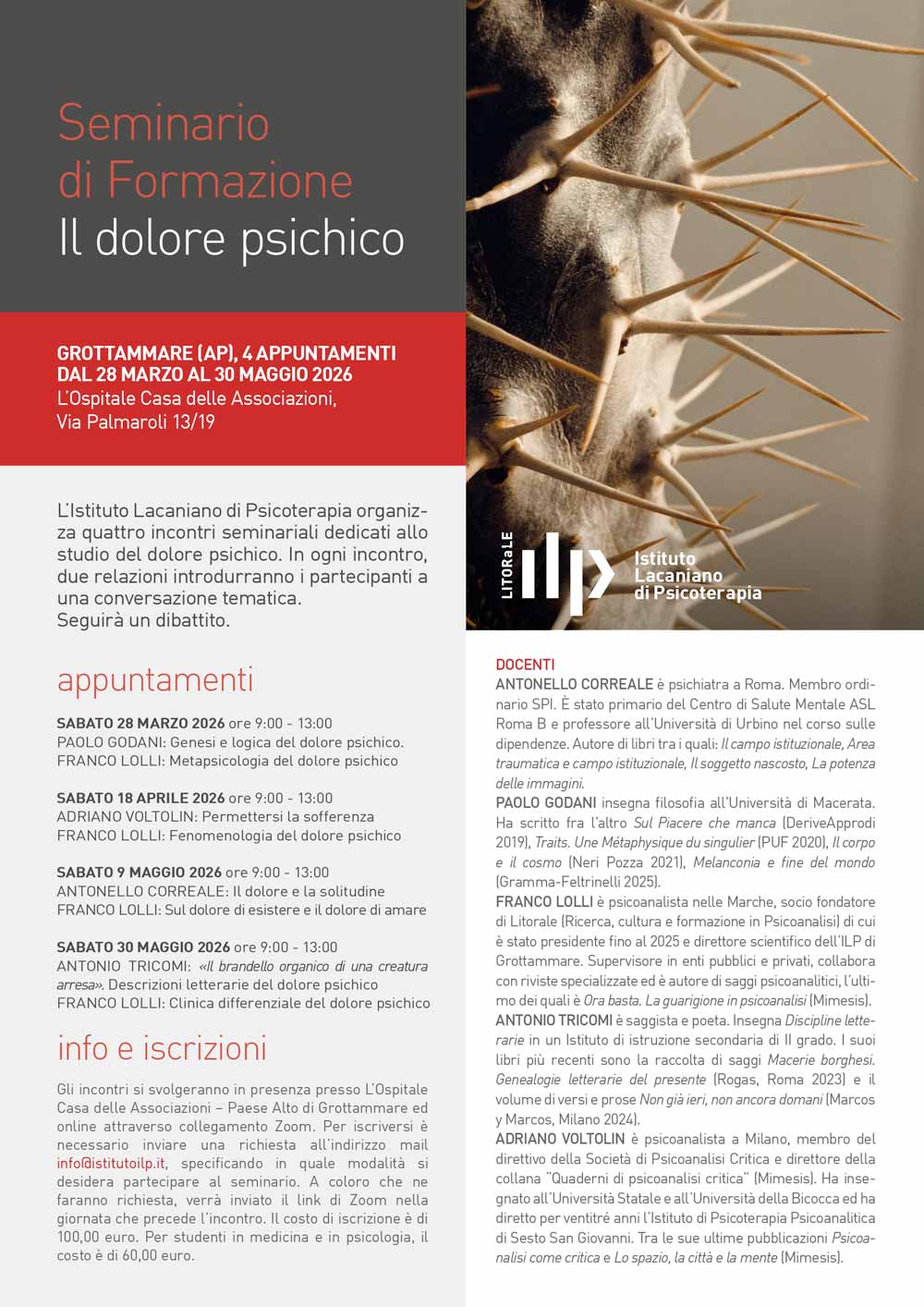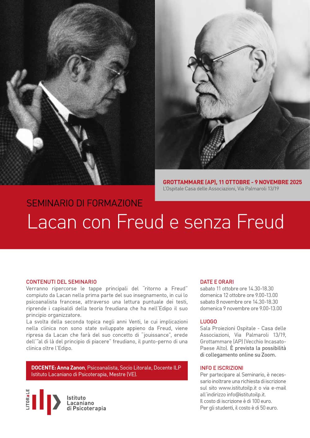 L’attività didattica di ILP, Istituto Lacaniano di Psicoterapia, si svolge a Grottammare (AP)